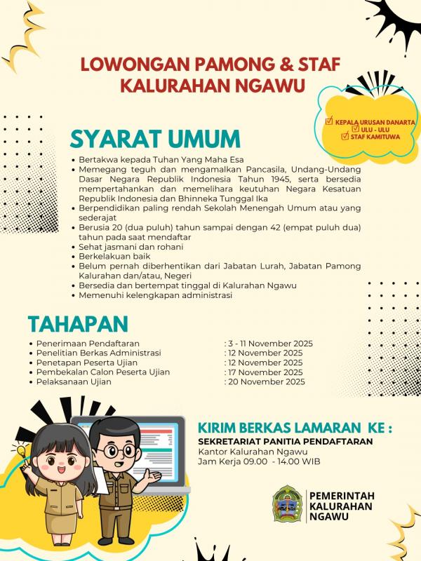 DIBUKA PENDAFTARAN PENGISIAN PAMONG & STAF PAMONG KALURAHAN NGAWU